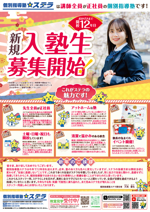 本年も個別指導塾ステラをよろしくお願いいたします。